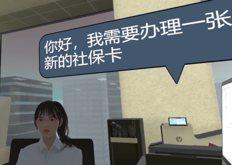 模擬到派出所現(xiàn)場相應(yīng)窗口辦理社保,體驗者以第一視角攜帶相關(guān)證明到派出所完成社保卡辦理。