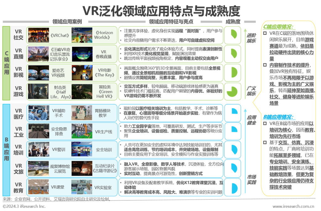 場景應用:C端與B端同步發(fā)力,由基礎場景實踐如游戲、影視、文旅,向更為全面的進階場景,如社交、工業(yè)、醫(yī)療延伸