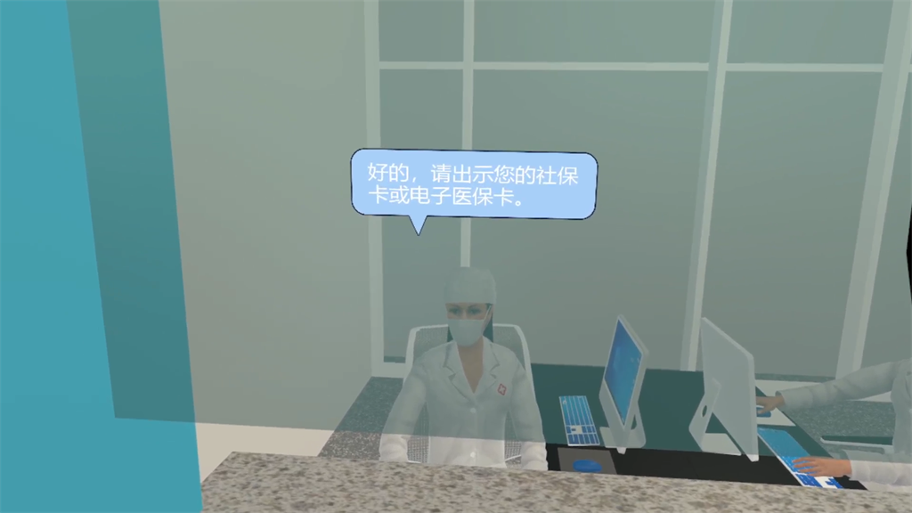 在現(xiàn)實生活中,去醫(yī)院看病掛號是必不可少的步驟,但對長期在監(jiān)獄服刑的人員而言,去醫(yī)院看病掛號可能并不容易,為有效縮短這種認知上的差距,浙江駿馬科技基于VR技術、3D全景建模技術,模擬現(xiàn)實生活中的醫(yī)院看病掛號場景進行還原,服刑人員根據(jù)交互提示,完成網(wǎng)上預約、自助機掛號,人工服務臺掛號等三種掛號方式。