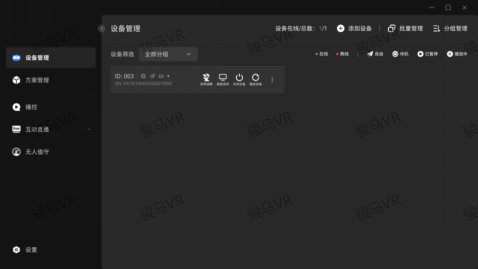 2、中控設備狀態(tài)顯示及異常報警:中控系統(tǒng)能夠?qū)崟r顯示每一臺VR頭顯是否連接正常、設備號等信息,可以管理客戶端設備。