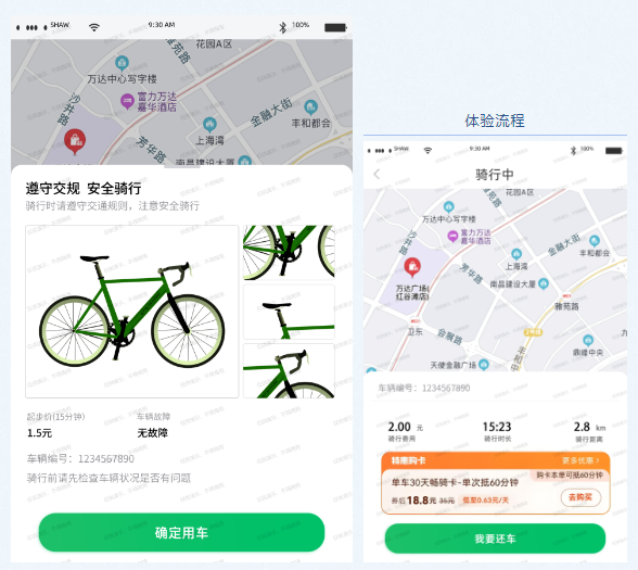 真實還原生活中的共享單車。通過平板電腦上的單機版共享單車APP,掃碼開鎖,開鎖配有語音提示和教學教程;還車時,一鍵點擊關(guān)閉車鎖,系統(tǒng)便會提示“還車成功”。整個軟件采用藍牙技術(shù)開鎖關(guān)鎖,確保信息安全。