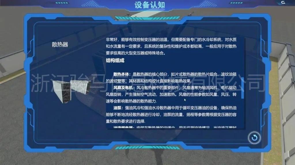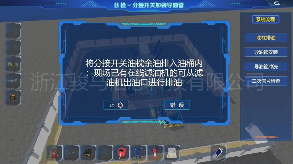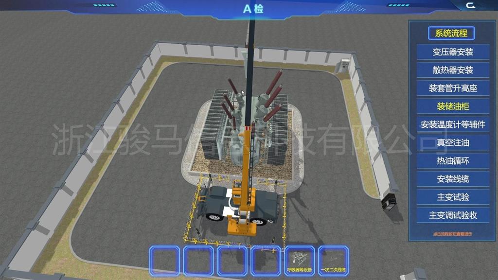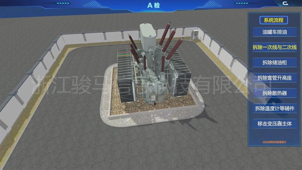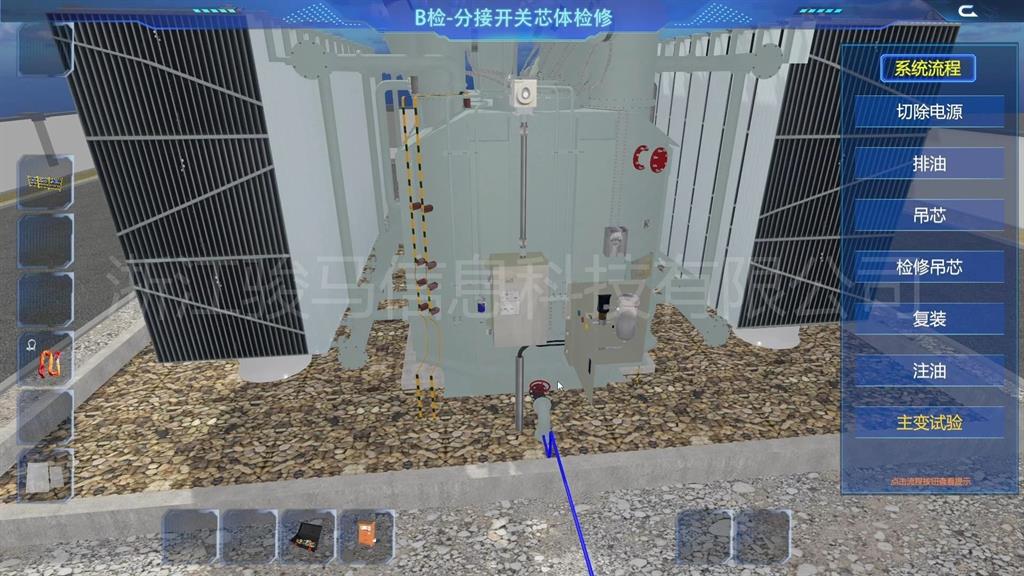 在軟件中,用戶可以體驗到每個設備的維護工作,包括變壓器、分接開關(guān)、儲油柜、散熱器、套管、瓦斯繼電器、溫度計和在線濾油機等關(guān)鍵部件。通過模擬體驗,掌握變壓器維護操作。