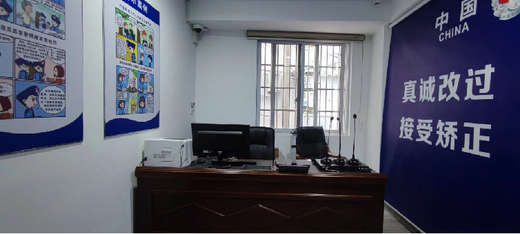 訓(xùn)誡室、宣告室等功能室主要用于對社區(qū)矯正對象進行訓(xùn)誡和組織開展社區(qū)矯正對象的入矯宣告和解矯宣告,我司對此以警藍為基調(diào)設(shè)置,莊重嚴(yán)肅,標(biāo)語、制度懸掛。其中訓(xùn)誡室“接受矯正、接受矯正”8個大字為社區(qū)矯正人員的改造指明了方向。