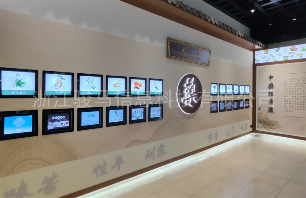 館內(nèi)共設(shè)有入口大廳、中醫(yī)藥文化發(fā)展歷程、中醫(yī)診療展示、中醫(yī)藥鍛煉互動、中草藥場景體驗、香囊制作研學課堂等的6個區(qū)域,并加入我司研發(fā)的AR八段錦體感體驗、自助查詢中醫(yī)文化多媒體展示系統(tǒng)、中藥科普查詢系統(tǒng)、中藥連連看益智游戲、中藥拼拼看益智游戲、中藥選選看益智游戲、書法里的中醫(yī)互動體驗、常見中藥優(yōu)劣真?zhèn)舞b別互動系統(tǒng)、治未病科普教育系統(tǒng)、中醫(yī)養(yǎng)生保健信息系統(tǒng)、藥食同源科普教育系統(tǒng)、中醫(yī)與二十四節(jié)氣系統(tǒng)、中醫(yī)互動答題系統(tǒng)、中藥古方查詢系統(tǒng)、中藥煎服知識科普互動系統(tǒng)、香囊制作多媒體展示系統(tǒng)等16款中醫(yī)文化多媒體設(shè)備,打造成中藥種類豐富、場景多元美觀、功能實用齊全的綜合性中醫(yī)藥文化科普館。