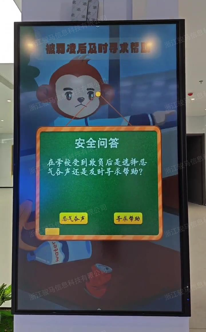 通過生動形象的展示、寓教于樂的方式、場景模擬的體驗以及靈活多樣的設(shè)計,有效地提高體驗者(學生)的安全意識、自我保護能力。軟件內(nèi)容有《安全上下樓梯》、《安全做游戲》、《注意熱水》、《滑梯安全》、《翻越圍欄》等15種選項。